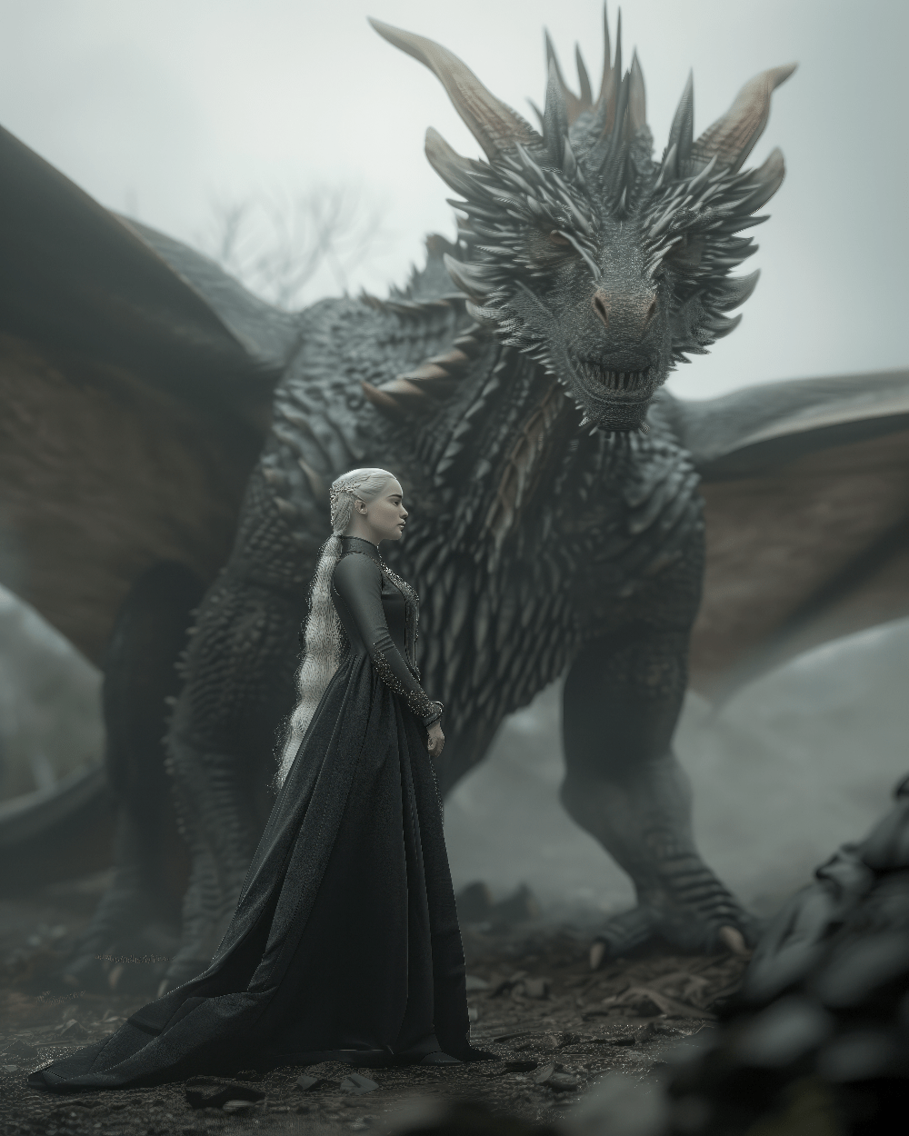 Леди с драконом, снимок вдалеке. Игра престолов.