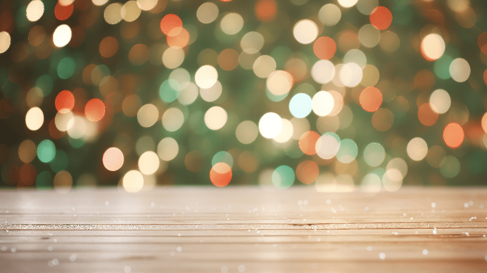 Поверхность деревянного стола с разноцветным боке